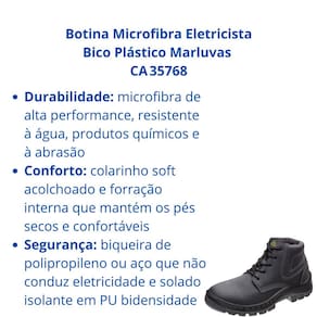 Botina Microfibra Eletricista Bico Plástico Marluvas CA?35768 Proteção, Conforto e Durabilidade para Profissionais