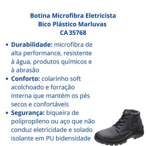 Botina Microfibra Eletricista Bico Plástico Marluvas CA?35768 - 39 - Preto