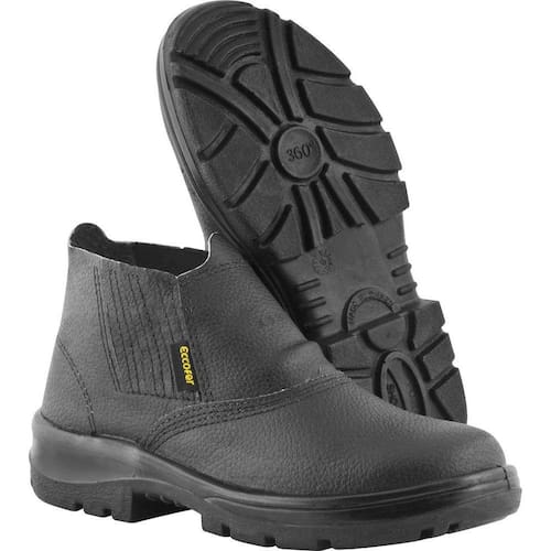 Material da botina: Raspa Número da botina: N 44 Material do solado da botina: Poliuretano Tipo de solado da botina: Monodensidade Tipo de biqueira da botina: Com biqueira de aço Tipo de amarração da botina: Com elástico Número do Certificado de Aprovação - CA: 28236