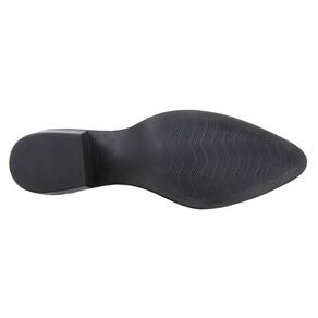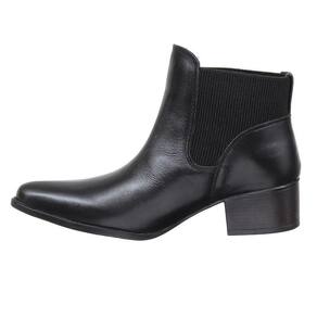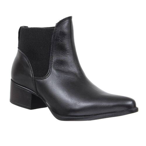 Botina feminina Cow Way fabricada em couro na cor Preta, possui cano com elásticos laterais, bico fino e solado de borracha.