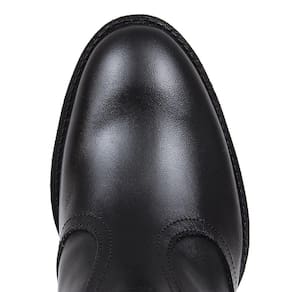 Botina feminina Cow Way fabricada em couro na cor Preta, possui cano curto com zíper lateral, bico redondo e solado de borracha.