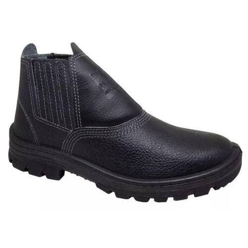C.A. 17138 Modelo R11 - Cartom Botina confeccionada em couro, fechamento em elástico, com biqueira de aço, solado monodensidade injetado direto ao cabedal e blaqueado. Possui palmilha Antimicróbiana Para proteção dos pés do usuário em locais onde haja riscos de queda de materiais e/ou objetos pesados Cor: Preto Numeração: 42 Marca: Não Informado Ean: 7898946351385
