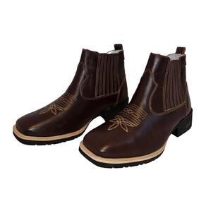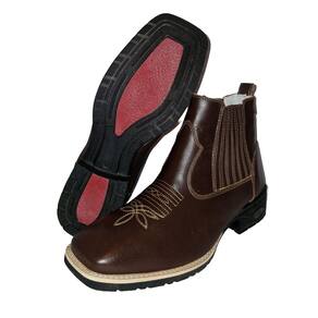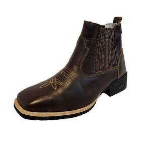 Botina Texana Bordada Em Couro Masculina Solado Borracha Costura Manual Puxador Traseiro Premium - 36 - Marrom