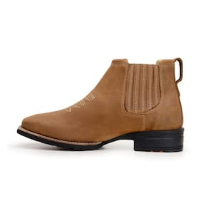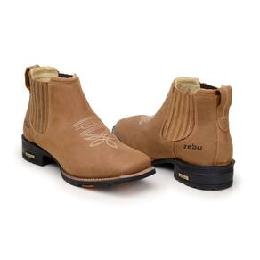 Botina Masculina Zebu, confeccionada em Couro Mustang na cor Sela, Solado em Borracha totalmente costurado , forração interna de couro, com palmilha confort de PU. Referência 57020MS06
