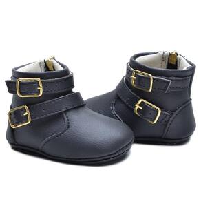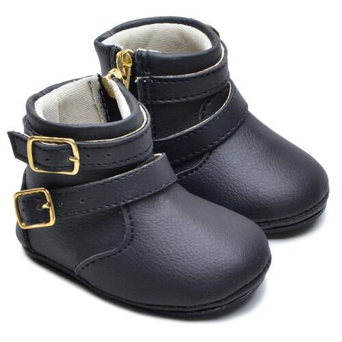 Botinha Feminina Infantil Bebê Tiras Fivelas Confortável - 14 - Preto