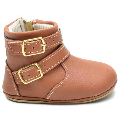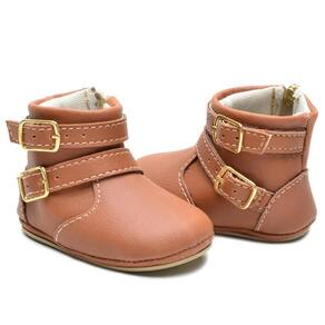 Botinha Feminina Infantil Bebê Tiras Fivelas Confortável - 17 - Marrom Chocolate