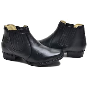 Botinha Masculina Bota Couro Cano Curto Costurada Lisa - 42 - Preto