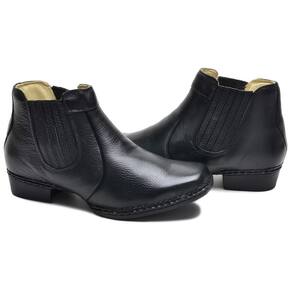 Botinha Masculina Bota Couro Cano Curto Costurada Lisa - 40 - Preto