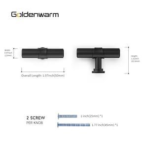 Os puxadores de armário pretos goldenwarm são feitos de aço inoxidável de alta qualidade com base de liga de zinco sólida, são ocos e leves, mas são muito resistentes, ficam muito bonitos quando instalados no armário, não são diferentes de alças sólidas e nossas alças têm alto desempenho de custo. O preço é muito menor do que a loja de ferragens local, mas eles são de ótima qualidade. Eles podem deixar seus armários e quartos bonitos e podem atender totalmente às suas necessidades. Se você precisar de algumas alças para decorar seus armários, compre agora! - ?Durável e premium?Os puxadores de armário pretos foscos feitos de aço inoxidável de alta qualidade com base de liga de zinco sólida na perna. E os detalhes são inspecionados e polidos individualmente. Estrutura de metal confiável para durabilidade prolongada - ?Design elegante?Detalhes requintados forjados em metal e dão um visual moderno. A textura fosca para um toque suave e confortável, os puxadores de gaveta pretos se destacam por ser uma decoração única para a casa - ?Amplamente compatível? Puxadores pretos goldenwarm adequados para armários de cozinha, gavetas de cômoda, armário de quarto, armários, armários de banheiro, móveis de sala de estar. Eles vão harmonizar com qualquer estilo de decoração de casa, casa de fazenda rústica/moderna - ?Medição e embalagem?Botões de armário de furo único; Comprimento total: 50 mm; Diâmetro: 12 mm; Projeção: 34 mm. Cada puxador é embalado individualmente e ensacado para proteger a bela cor. Parafusos de dois tamanhos de 2,54 cm e 4 cm de comprimento por puxada - ?100% de satisfação do cliente?Testamos todos os produtos para atender à satisfação, se nosso produto tiver algum faltando ou com defeito, , reembolsaremos cada centavo do seu dinheiro ou lhe daremos uma substituição