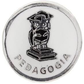 Boton Rodeo West para chapéus e bonés modelo Pedagogia, fabricado em metal com banho cromo, detalhes em alta definição e acabamento em fundo Branco e Preto.