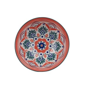 Bowl Cerâmica Flor Arte Estampado Vermelho 15,5x6,5x7,2cmx