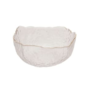 O Bowl de Cristal Martelado Taj da Wolff (720ml) é uma peça de mesa posta que combina a textura artesanal do cristal martelado com um acabamento luxuoso de filete dourado na borda. Com dimensões de 17cm de diâmetro por 8cm de altura, ele é indicado para servir saladas, sobremesas, sopas ou entradas com um toque sofisticado e vintage.