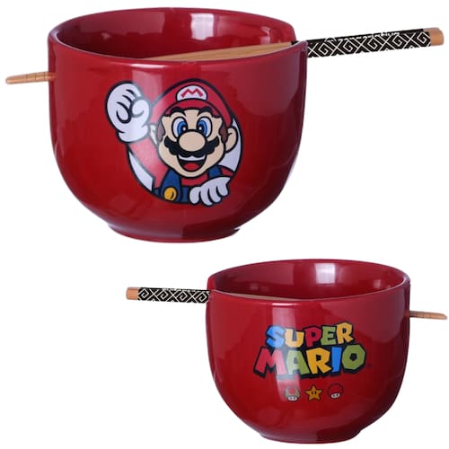 Bowl Cumbuca Tigela Com Hashi Super Mario Porcelana Vermelha 500ml Oficial Nintendo!