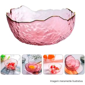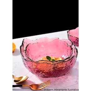 1 Bowl de Cristal Martelado c/ Borda Dourada Taj Rosa 19x10cm 28955 - Wolff