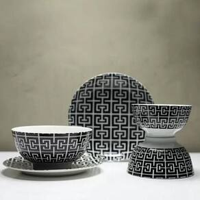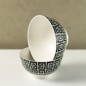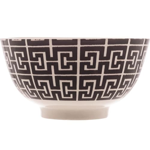 Bowl de Porcelana Lyor 410ml Egypt Preto Decorado Cumbuca Caldos Sobremesas.