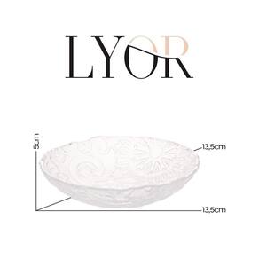 O Bowl de Vidro Sodo-Calcico Paisley 13,5x5cm Lyor tem um design elegante e moderno, com um padrão de paisley gravado no vidro. O padrão é sutil e adiciona um toque de elegância à peça.