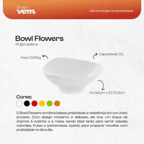 O Bowl Flowers 1,5 L VEM combina beleza, praticidade e resistência em um único produto. Com design moderno e delicado, ele traz um toque de charme à cozinha e à mesa, sendo ideal tanto para servir saladas coloridas, frutas e sobremesas, quanto para preparar receitas com praticidade no dia a dia.