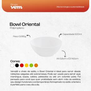 CONTÉM: 1 Bowl Oriental Redondo 500ml em Polipropileno