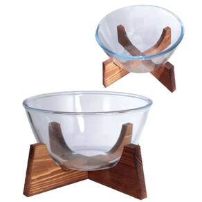 Bowl, Saladeira, Tigela Vidro Borossilicato Suporte Madeira Acacia 2,7litros e 23x23x15cm