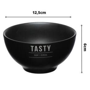 Especificações: Dimensões: 12,5 x 12,5 x 6cm Capacidade: 440ml Material: Porcelana Cor: Preto Origem: Indonésia