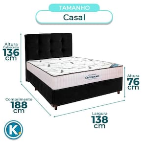 Modelo: Elite BiPartido Marca: Nature Tamanho: Casal Tecido: Veludo Largura: 138cm Comprimento: 188cm Altura: 35cm Altura dos Pés: 13cm Material dos Pés: Madeira Suporte de Peso: 150Kg Peso: 27Kg Garantia: 3 Meses