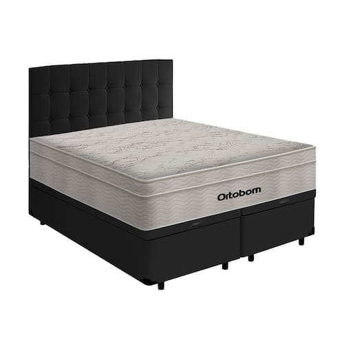 Sejam bem-vindos(as) a Lucas Home! Pensando em renovar o seu quarto? Achou a melhor solução, além de conforto e qualidade, esse conjunto trará para o ambiente sofisticação. A cabeceira Cassis é produzida com madeira de eucalipto e espuma D12. Possui um acabamento de alta qualidade deixando o seu ambiente mais sofisticado e despojado, dando aquele conforto na hora de ver filmes, séries e ler uma revista ou um bom livro.A base baú é confeccionada com madeira de reflorestamento com tratamentos anticupim e antimofo, o seu diferencial é o compartimento interno garantindo um novo espaço em seu quarto, agregando um valor e sofisticação ao ambiente.O colchão de molas ensacadas AirTech SpringPocket é feito com bordado Matelassê e têm proteções antifungo e antimofo. O produto, ao deitar-se, proporciona comodidade para não prejudicar sua coluna. IMPORTANTE: IMAGENS MERAMENTE ILUSTRATIVAS.(Não trabalhamos com móveis planejados. Podendo haver pequenas variações nas medidas e cores do produto). **A Lucas Home não disponibiliza no momento o serviço de montagem, sendo de total responsabilidade do comprador. Recomendamos que a montagem seja feita por um profissional da área. **ATENÇÃO: Verifique se as dimensões dos produtos passam por elevadores, portas, escadas e corredores. Não nos responsabilizamos pelo transporte dos produtos por escadas, guinchos, içamentos ou quaisquer outros meios específicos de transporte. Especificações Técnicas Cabeceira:- Marca: Lucas Home; - Encosto: Espuma D12; - Materiais dos Pés: PVC - Revestimento: Material Sintético - Engate: Macho e Fêmea - Garantia: 3 meses; - Dimensões do produto (largura x comprimento x altura): 160x10,5x121cm.Especificações Técnicas Baú:- Marca: Lucas Home;- Material: Madeira tratada;- Peso máximo recomendado: até 150 Kg (por pessoa);- Altura do baú: 37cm;- Profundidade do baú: 27cm;- Altura dos pés: 5cm;- Revestimento da Cama: Material Sintético;- Garantia: 6 meses de garantia;- Dimensões do produto (largura x comprimento x altura) Queen: 158x198x42cm. Especificações Técnicas Colchão:- Marca: Ortobom;- Proteções: Antiácaro- Antialérgico- Antifungo- Antimofo;- Acabamento: Bordado em Matelassê;- Matéria prima: Mola Ensacada / Espuma / Tecido;- Tipo de conforto: Firme;- Peso máximo recomendado: até 150 Kg (por pessoa);- Garantia: 12 Meses;- Dimensões do produto (largura x comprimento x altura) Queen: 158x198x25cm Quais produtos vem nesse conjunto?•Colchão de molas ensacadas Airtech Springpocket Ortobom•Base Baú Queen Preta•Cabeceira Preta