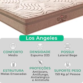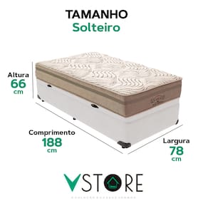 A tecnologia que a sua casa merece está na V-Store! O Conjunto Colchão Los Angeles + Base Box Baú Bravus da V-Store oferece conforto e funcionalidade. O colchão, com molas ensacadas e sistema EPS, garante suporte ideal, conforto térmico e proteção antiácaro. A base box, com amplo espaço de armazenamento, é feita de madeira reflorestada e revestida com tecido resistente, proporcionando praticidade e sofisticação ao seu quarto.Característica Do Colchão: Modelo: Los AngelesMarca: V-StoreTamanho: SolteiroDimensões: 88x28x188 (Largura x Altura x Comprimento)Conforto: MédioSistema: Molas EnsacadasPillow: Não se aplicaPeso Máximo recomendado: 150 kg (Por pessoa)Proteções: Antiácaro, antialérgico, antifungo, antimofoGarantia: 12 Meses (Espuma) / 10 anos ( Conjunto de Molas Ensacadas)Característica Da Base: Marca: V-StoreModelo: BravusCor do Box: BrancoTamanho: SolteiroDimensões: 88x44x188 (Largura x Altura x Comprimento)Estrutura: MadeiraPeso máximo recomendado: 150 kg (Por Pessoa)Altura do Box: 38 cmAltura dos Pés: 6 cmAltura total: 44 cmGarantia: 12 Meses (Estrutura) / 3 meses (Tecido)Selo Ecologicamente CorretoAtenção:- Antes de finalizar sua compra, recomendamos que verifique se as dimensões do produto são adequadas para serem transportadas pelos elevadores, portas, escadas e corredores de sua residência. Ressaltamos que não nos responsabilizamos pelo transporte do produto por meios específicos, como escadas, guinchos ou içamentos.- É possível que hajam leves variações de cor de acordo com o dispositivo que está sendo utilizado como smartphones, computadores, monitores e outros.