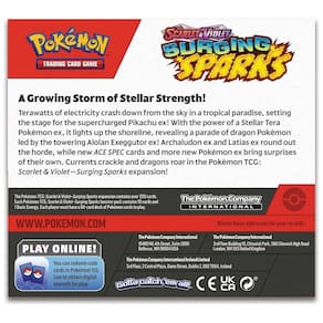 A box booster Pokémon TCG: Scarlet & Violet – Surging Sparks reúne 36 pacotes de booster da expansão Surging Sparks, indicada para jogadores e colecionadores que desejam ampliar rapidamente sua coleção com cartas da série Scarlet & Violet. Cada booster traz cartas aleatórias, incluindo Pokémon, Treinadores e Energias, permitindo montar e aprimorar baralhos temáticos ou competitivos. ? A expansão Surging Sparks contém mais de 250 cartas, incluindo mais de uma dúzia de Pokémon ex, novos cards ACE SPEC e mais de 50 cartas de Pokémon e Treinadores com ilustrações especiais, o que torna a coleção atrativa tanto para uso em jogo quanto para exposição em pastas e vitrines. O produto é recomendado para jogadores a partir de 8 anos e segue o padrão oficial de cartas do Pokémon TCG. ? Ficha Técnica