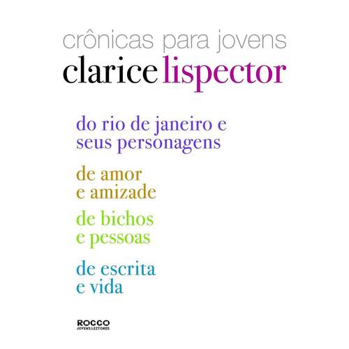 Amor e amizade inspiraram Clarice Lispector dezenas de vezes. Prova disso são as quatro dezenas de textos selecionadas pelo editor Pedro Karp Vasquez para a coletânea De amor e amizade – crônicas para jovens, primeiro de uma coleção que reunirá crônicas, escolhidas por temas, de Clarice Lispector. Sem prender-se a significados prosaicos, a escritora criou durante anos histórias que remetem a amizades daquelas sem tamanho, a amores para o resto da vida, a relacionamentos baseados na superficialidade e até mesmo ao episódio daquele amor destruído por causa de um bule de bico rachado. Passadas mais de três décadas da morte de Clarice Lispector, os textos confirmam que esses sentimentos permeiam relações e gerações. Os textos escolhidos apresentam-se impregnados pela forma incomum com que a escritora transporta para o papel seu jeito de ver o mundo e de lidar com o amor e a amizade. Linha após linha, Clarice conduz seus leitores pela “mistura de observações das miudezas do cotidiano com vastos voos do espírito”, como define o editor no prefácio. Leitores de Clarice Lispector não tem idade, mas desta vez a seleção foi pensada para provocar uma experiência inspiradora em jovens leitores, aqueles que “estão começando a descobrir os mistérios e os prazeres do amor e da amizade”. Histórias fictícias intercalam-se com relatos pessoais, nos quais Clarice parece prestar uma homenagem a amigos queridos. Aparecem nesses momentos, companheiros de episódios de alguma fase da vida da autora, como é o caso do matemático Leopoldo Nachbin. Clarice e Leopoldo encontraram-se no primeiro dia de aula do Grupo Escolar João Barbalho, em Recife. Durante alguns anos, os dois foram os mais impossíveis da turma, com boas notas em todas as disciplinas, exceto em comportamento. Clarice escreve ainda sobre outro tipo de amor/amizade, aquele com toques genuínos de admiração, algo próximo ao sentimento que levou a leitora anônima a fazer um suéter especialmente para a escritora. A resposta, em tom de agradecimento, foi escrita com a delicadeza que Clarice costumava dedicar aos leitores – a quem chegava a responder cartas e a escrever crônicas baseadas em suas sugestões e seus questionamentos: “E eis-me dona de repente do suéter mais bonito que os homens da terra já criaram.” De amor e de amizade – crônicas para jovens não se restringe, porém, somente àqueles que encontram-se com Clarice pela primeira vez, mas serve também como um “sopro de renovação e reflexão para os leitores mais maduros”, aqueles que há muito já descobriram que a vida não foi feita para ser vivida automaticamente e que tanto a amizade quanto o amor devem ser experimentados até a última gota – “sem nenhum medo”, como ressalta em determinado momento a escritora. / Quarto livro da coleção Clarice Lispector – Crônicas para Jovens, organizada por Pedro Karp Vasquez, De bichos e pessoas reúne algumas das crônicas mais comoventes de Clarice Lispector, aquelas em que fala dos animais e das relações entre eles e os seres humanos. Dona de uma percepção aprofundada do mundo animal, a escritora interessava-se por todo e qualquer ser vivo – desde as enormes baleias aos ínfimos insetos, com especial carinho pelos cachorros e compaixão pelas galinhas, sempre tão desprezadas. Nesta coletânea, o leitor é convidado a refletir sobre a vida, a natureza e a condição humana a partir de pequenos textos que revelam a visão singular de Clarice "sobre bichos e pessoas". / Avessa a teorias e análises técnicas da literatura, Clarice Lispector nunca deixou de refletir sobre a escrita e o ato de escrever em seus romances, contos e crônicas. “Em Clarice vida e escrita se fundem e se confundem de tal forma que é difícil dizer onde começa uma e onde termina a outra”, afirma Pedro Vasquez, organizador da coletânea De escrita e vida – Crônicas para jovens, que chega às livrarias pelo selo Rocco Jovens Leitores. Segundo título da coleção que reúne crônicas de Clarice Lispector escolhidas por temas e selecionadas especialmente para os jovens que travam os primeiros contatos com a obra da autora, De escrita e vida traz as crônicas da escritora sobre o ofício de escrever. Depois de falar De amor e amizade no primeiro livro da coleção Crônicas para Jovens, os textos deste De escrita e vida revelam as alegrias, dores, angústias e, acima de tudo, a estreita ligação entre o simples ato de respirar e a necessidade de escrever da autora de A hora da estrela e A paixão segundo G. H. , entre outros clássicos da literatura brasileira. Um dos temas centrais, portanto, da obra de Clarice e mesmo de sua existência, o ato de escrever e a escrita como forma de investigação dos mistérios da condição humana são o fio condutor que permeia as crônicas reunidas no livro, formando um revelador autorretrato da escritora, uma das mais importantes da língua portuguesa. Pensado especialmente para os jovens, De escrita e vida, assim como De amor e de amizade, não se restringe, porém, somente àqueles que se encontram com Clarice pela primeira vez, mas serve também como um “sopro de renovação e reflexão para os leitores mais maduros”, como sugere o organizador da coletânea na introdução do primeiro livro. Afinal, sua obra permanece vibrante a cada leitura, sendo capaz de arrebatar igualmente iniciantes e iniciados com a mesma intensidade, entrega e deslumbramento. Idade Mínima Recomendada: 15 Anos / Nessa coletânea de crônicas – terceira de uma coleção que reúne textos de Clarice selecionados por temas, com o objetivo de apresentar a faceta cronista de umas das maiores escritoras brasileiras às novas gerações –, o leitor conhecerá tanto o Rio pessoal e secreto da autora quanto o coletivo, numa mescla hábil do espírito carioca com seu modo único de ver o mundo.