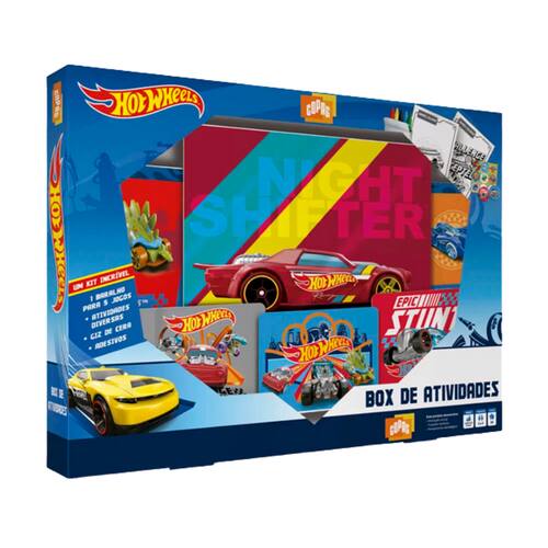 Informações do Produto: O box de atividades hot wheels vai garantir a diversão das crianças. Com mini jogos, o box de atividades hot wheels inclui cartas, lâminas com atividades variadas, uma caixa de giz cera e uma cartela de adesivos.