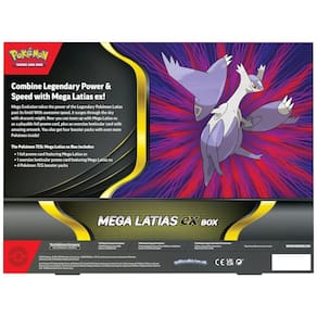 O Box de cartas Pokémon TCG Mega Latias EX é um conjunto temático voltado a jogadores e colecionadores que desejam adicionar versões promocionais de Mega Latias ex à coleção. O produto inclui uma carta promocional foil de Mega Latias ex em tamanho padrão de jogo, adequada para uso em baralhos dentro das regras oficiais do Pokémon TCG.