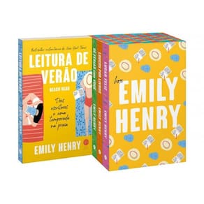 As quatro comédias românticas deliciosas de Emily Henry reunidas pela primeira vez em um charmoso box que vai deixar os fãs apaixonados. Leitura de verão Em Leitura de verão , uma escritora de romances que não acredita mais no amor e um escritor literário sufocado pela rotina se envolvem em um desafio que pode subverter tudo o que eles sempre pensaram sobre o que é ser feliz. Augustus Everett é um aclamado autor de ficção literária. January Andrews escreve romances best-seller. Eles definitivamente são polos opostos. A única coisa que têm em comum é que, durante três meses, vão morar em casas de praia vizinhas, ambos falidos e paralisados por um bloqueio criativo. Cada um vai finalizar um livro e ninguém vai se apaixonar. Será? De férias com você Dois melhores amigos. Dez viagens de verão. Uma última chance de se apaixonar. Poppy e Alex. Alex e Poppy. Eles não têm nada em comum. Ela é uma garota rebelde; ele usa calça cáqui. Ela tem um desejo insaciável de viajar; ele prefere ficar em casa lendo um livro. E de alguma forma, desde uma fatídica carona na faculdade há muitos anos, os dois são melhores amigos. Até dois anos atrás... quando eles estragaram tudo. E, desde então, não se falaram mais. Agora Poppy tem uma semana para consertar as coisas. Será que algo mais ainda pode dar errado? Loucos por livros Loucos por livros vai aquecer o coração dos leitores e mostrar um pouquinho dos bastidores do mercado editorial. Os livros são a vida de Nora Stephens — e ela definitivamente não é o tipo de heroína dos livros. Não é a garota impulsiva, nem a descontraída, muito menos a imagem da meiguice. E é por isso que Nora concorda em passar o verão em Sunshine Falls, Carolina do Norte, quando Libby implora por uma viagem de irmãs. Mas, em vez de piqueniques no campo ou encontros inesperados com um belo médico, ou quem sabe com um barman musculoso, Nora esbarra em Charlie Lastra, um editor ranzinza que ela conhece de Nova York. Seria um daqueles encontros fofos se não fosse o fato de que eles já se viram antes — e nunca foi fofo. Mas, à medida que se veem juntos repetidas vezes, o que eles descobrem pode acabar por deslindar as histórias cuidadosamente elaboradas que eles escreveram sobre si mesmos. Lugar feliz Lugar feliz traz a história de um casal que ainda não sabe se quer ficar junto ou separado. Harriet e Wyn são o casal dos sonhos desde a faculdade. Só que agora — por razões sobre as quais não conversam — eles não combinam mais. Faz cinco meses que Harriet e Wyn terminaram, e ainda não contaram aos seus melhores amigos. Assim, continuam dividindo o maior quarto da casa no Maine onde sua turma de amigos passa férias há uma década. Porque a casa no Maine está à venda, e esta é a última semana que os amigos terão para ficar juntos no paraíso. Depois de anos apaixonados, não deve ser tão difícil fingir por apenas uma semana, na frente das pessoas que conhecem os dois como ninguém… certo? “Uma das minhas autoras favoritas.” — Colleen Hoover “Emily Henry é a nova autora que vou comprar sem nem pensar.” — Jodi Picoult “Mais um hit da campeã. A mulher não erra.” — Taylor Jenkins Reid “A prosa é fácil; os personagens são encantadores. A única desvantagem é chegar ao fim.” — V. E. Schwab