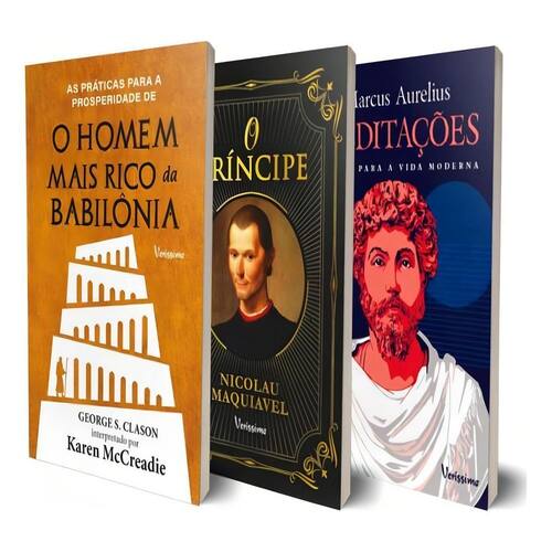 Livros que atravessam o tempo e são transportados para os cursos e palestras dos maiores influenciadores do século 21, esses três títulos possuem riqueza inigualável e teorias que já foram provadas pelo tempo. Seja o foco em crescimento pessoal, em evolução mental ou enriquecimento, essa coleção aborda todas as vertentes de uma pessoa de sucesso! Meditações: as reflexões aqui contidas mostram como a resposta para a vida está em manter uma mente calma e racional, e em não perder o controle emocional por causa de eventos sobre os quais não temos o controle. Consagrados como uma série de exercícios espirituais carregados de sabedoria e orientação prática, os insights e conselhos do filósofo e imperador romano são leitura obrigatória para qualquer pessoa interessada em estudos do comportamento humano. Escrito por um dos maiores pensadores da história, O Príncipe de Nicolau Maquiavel é leitura essencial para quem deseja aprender a navegar melhor em ambientes competitivos e prosperar. As práticas para a prosperidade de O homem mais rico da Babilônia é o mais famoso livro de finanças pessoais de todos os tempos e traz lições importantes para quem quer administrar melhor as dívidas e multiplicar seus recursos.