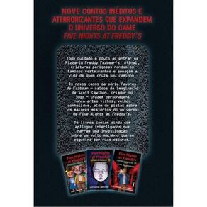 Box inédito reúne os três livros finais da série Pavores de Fazbear, com nove contos interligados e o impactante desfecho do mistério “Aparição de Sutura” Franquia de sucesso mundial, Five Nights at Freddy’s deu origem a videogames que conquistaram uma legião de fãs, filmes recorde de bilheteria e livros best-sellers. A série Pavores de Fazbear traz personagens nunca antes vistos, velhos conhecidos, além de pistas sobre os maiores mistérios do universo de FNAF. O último box reúne os volumes O Ventríloquo, Carinha de Amigo e Mestre das travessuras. Em nove contos inéditos e aterrorizantes, saídos da imaginação de Scott Cawthon, criador do jogo que deu origem à série, animatrônicos malignos estão à solta e vão surpreender até o fã mais corajoso. Em O Ventríloquo, uma criação inovadora se torna um grande tormento, e uma visita ao fliperama e um passeio escolar acabam em desastre. Em Carinha de Amigo, os personagens vão descobrir que quanto maior a pressa para terem o que desejam, maior será o arrependimento ao encararem as consequências de suas ações. Já Mestre das travessuras mostra que nem toda brincadeira é divertida, e um único instante é o suficiente para que seja tarde demais para se salvar. Além dos contos interligados de Five Nights at Freddy’s, vamos conhecer o impactante desfecho do mistério “Aparição de Sutura”, no qual um investigador tenta desvendar o quebra-cabeça da identidade de uma criatura macabra. A investigação chega ao clímax, com novas pistas revelando conexões inimagináveis.