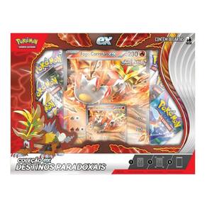 Descubra o Poder dos Pokémon Paradoxo com a Coleção ex Destinos Paradoxais - Batalha Épica entre Ancestrais e Futuristas Entre em um confronto épico com a nova Coleção ex Destinos Paradoxais, onde os Pokémon Ancestrais e Futuristas se encontram em uma batalha atemporal Prepare-se para enfrentar o poder bruto do Fogo Corrosão ex, um Pokémon Ancestral de sagacidade primitiva, e a incrível maestria metálica do Rocha Férrea ex, o Pokémon Futurista que desafia as leis da tecnologia. Nesta box imperdível, os fãs de Pokémon Estampas Ilustradas terão acesso a um mundo de possibilidades com cartas exclusivas e poderosas. Cada Box ex Destinos Paradoxais inclui uma carta holográfica promocional e uma carta extragrande de um desses Pokémon Paradoxo, prontas para fortalecer seu deck e elevar suas estratégias de batalha a um novo nível. Além disso, você poderá expandir sua coleção com seis pacotes de booster e uma carta codificada para o Pokémon Estampas Ilustradas Live, garantindo ainda mais diversão e poder no universo digital Conteúdo da Coleção ex Destinos Paradoxais:1 Carta holográfica promocional jogável de um Pokémon Paradoxo Ancestral ou Futurista 1 Carta extragrande holográfica destacando um Pokémon Paradoxo6 Pacotes de booster Pokémon Estampas Ilustradas com aliados prontos para a batalha1 Carta codificada para desbloquear conteúdos no Pokémon Estampas Ilustradas LiveEspecificações Técnicas:Formato das Cartas: 37 cartas no tamanho padrão 63 mm x 88 mm e 1 carta extragrande 133 mm x 187 mm Idade Recomendada: 7 anos ou maisNúmero de Jogadores: 2 ou maisGênero: Meninos e MeninasTipo de Embalagem: Box colecionávelMarca: PokémonPrepare-se para vivenciar uma batalha histórica entre o passado e o futuro Garanta já a sua Coleção ex Destinos Paradoxais e lidere seu time de Pokémon Paradoxo rumo à vitória em partidas inesquecíveis