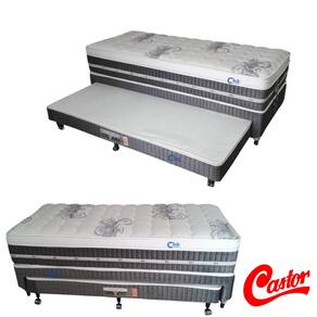 PRINCIPAIS CARACTERÍSTICAS Marca Castor Colchão Tecnopedic One Face – 32 cm Cama box com auxiliar acoplada Colchão auxiliar em espuma D28 Estrutura reforçada Ideal para quartos pequenos e visitas Conforto, resistência e durabilidade