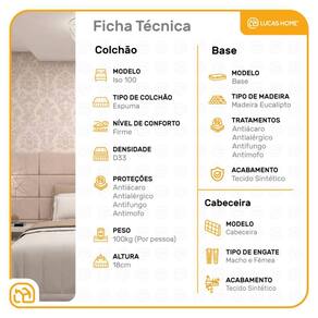 A base box é confeccionada com madeira de reflorestamento, tratamentos anticupim e antimofo. Seu revestimento de alta qualidade agrega valor e sofisticação ao quarto.