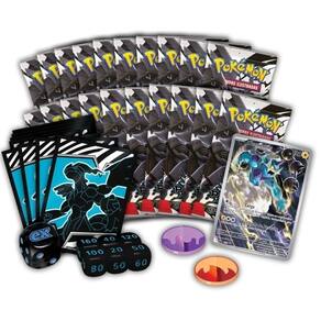 20 pacotes de booster de Escarlate e Violeta – Raio Preto do Pokémon Estampas Ilustradas! 1 carta holográfica promocional com arte expandida de Thundurus! 65 capas para cartas! 6 dados para usar como contadores de dano! 1 dado para jogada de moeda válido para competições! 2 marcadores de condições de plástico! 1 caixa de colecionador para guardar tudo! 1 carta codificada para Pokémon Estampas Ilustradas Live.