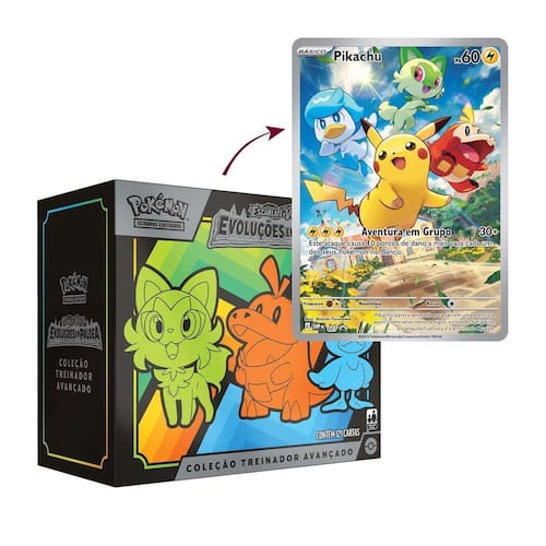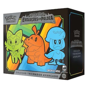 Box Treinador Avançado Pokemon Ev2 Evoluções Em Paldea Copag. Com 121 cartas no formato 63mm x 88mm, este conjunto oferece uma experiência de jogo emocionante e desafiadora. A expansão Escarlate e Violeta - Evoluções em Paldea apresenta novos poderes, lendas ameaçadoras e parceiros iniciais que evoluíram e estão prontos para tomar o palco. Os Pokémon Meowscarada EX, Skeledirge EX e Quaquaval EX estão prontos para encantar com sua mágica, música e dança fascinantes. O destaque desta coleção é a presença do Pikachu, que se junta à equipe dos Pokémon EX. Inclui um guia para jogadores, dados, marcadores de condições, capas para cartas e uma caixa de colecionador. Adequado para jogadores de Pokémon Estampas Ilustradas que desejam expandir sua coleção de cartas e aprimorar suas estratégias de jogo. Ean: 7896192332011