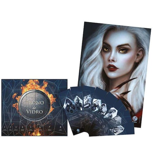 O Box Trono de Vidro traz, pela primeira vez, a série fenômeno mundial em um exuberante box rígido e livros com novo projeto gráfico. Inclui marcadores temáticos e pôster da personagem Manon Blackbeak