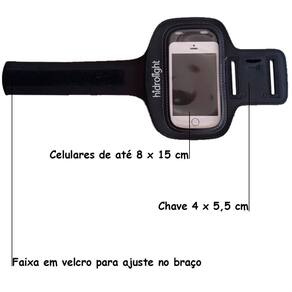 A braçadeira é um acessório prático, leve e versátil, permite que você carregue seu dispositivo eletrônico durante a prática de atividades físicas, e ainda conta com um pequeno compartimento para guardar sua chave. Confeccionado em material de extrema qualidade, possui uma faixa regulável que facilita o ajuste no braço. Especificações: tiras aderentes ajustável; compartimento principal 8 x 15 cm; compartimento para chave 4 x 5,5 cm; composição: pu, pvc cristal e passadores em poliamida. Instruções de lavagem: lavar à mão; temperatura máxima da água 30°c; não usar alvejantes ou similares; não colocar na secadora; não passar; não lavar a seco.