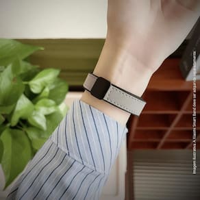 Sistema de fecho magnético integrado que proporciona ajuste rápido, firme e personalizado ao pulso, garantindo praticidade na colocação e remoção.