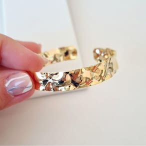 Descrição: Bracelete Feminino fino Regulado Martelado banhado Ouro 18k