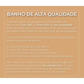 1 - Evite o contato com produtos químicos. 2 - Tome cuidado com perfumes e hidratantes. 3 - Limpe com água e sabão neutro. 4 - Não utilize semijoias para fazer exercícios físico. 5 - Evite atritos com outras superfícies. 6 - Guarde com cuidado. 7 - Evite quedas.