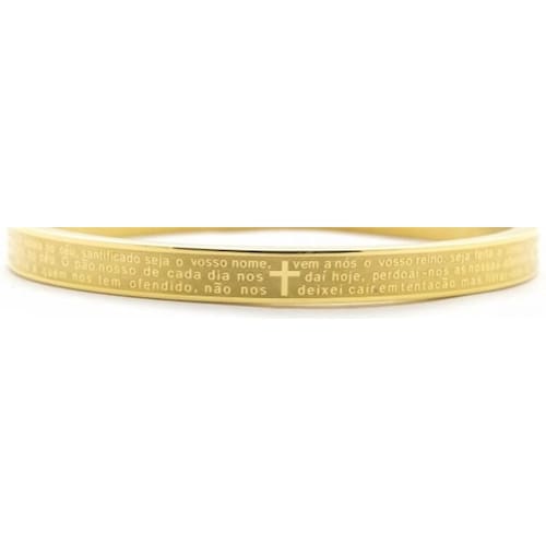 Bracelete Masculino Aço Com Oração Pai Nosso Em Banho de Ouro 18k Feito para homens que acreditam nos braceletes com poderosos itens na hora de complementar o look, uma peça de puro requinte o Bracelete Masculino Aço Com Oração Pai Nosso Em Banho de Ouro 18k além de trazer elegância, é um acessório cheio de personalidade e design impressionante. Características do Bracelete Masculino de Aço Oração Pai Nosso Material: Bracelete fabricado em aço inoxidável 316L com Banho de Ouro 18k. Oração Pai Nosso com gravação em alto relevo Largura da Pulseira 6mm Tamanho: Ideal para ser Utilizado em punhos de até 18cm Marca: Não Informado Ean: 7599683449624