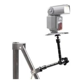 Braço articulado 11'' magic arm fancier ma-11 Braço articulado de 28 cm. Ideal para fixar iluminadores em câmeras ou filmadoras, pode ser fixado em tripés ou sliders possibilitando conseguir o ângulo de iluminação que desejar. Possui pino com rosca padrão de 1/4 em uma extremidade e furo com rosca padrão de 1/4 na outra onde é conectado um adaptador com sapata. Possui o mesmo encaixe do flash.