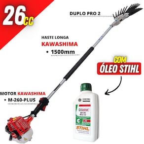 Derriçadeira Premium Kawashima KWD2610D2L com Haste Longa 1500mm Motor Kawashima 25,6cc e Kit Duplo Pro 2 + ;Óleo Castrol Stihl 500ml