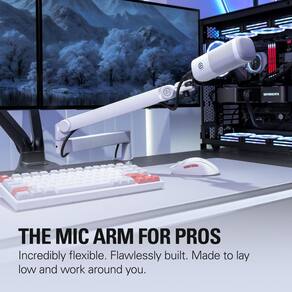 Elgato Wave Mic Arm Pro White - Braço de microfone giratório de 360° com mola a gás de perfil baixo, microfones funcionais, Shure SM7B/HyperX QuadCast/Rode/Blue Yeti e mais – para