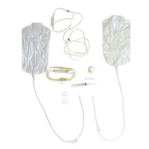 Acompanha: Simulador de braço. Bolsa de soro (2). Scalp (1). Equipo (1) Presilhas (2). Talco (1).