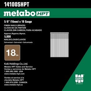 - Componentes incluídos: Metabo Hpt 14100Shpt 18 Calibre Eletro Galvanizado Brad Pregos 5/8" X 18 Ga, por exemplo, 5000 unidades